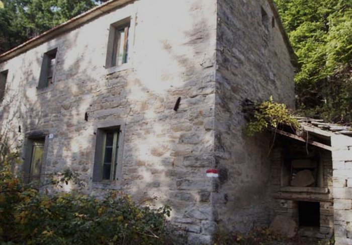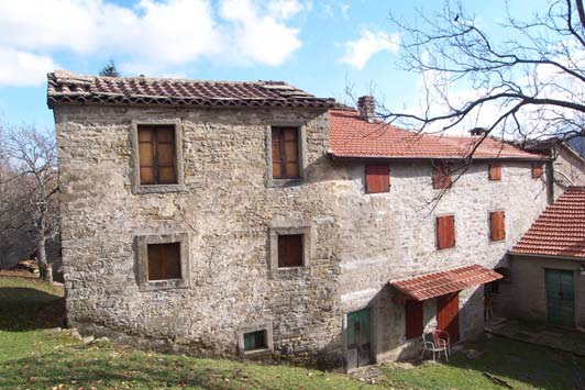 L’insediamento è caratterizzato da un nucleo originario posto su pendio, con accesso alla stalla a valle e quello dell’abitazione a monte.