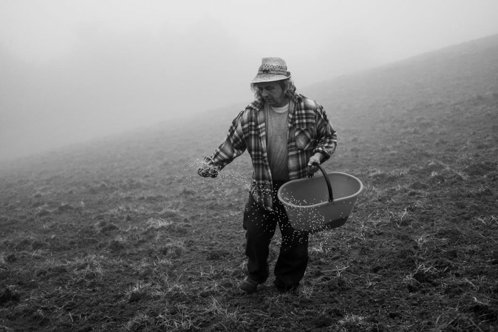 Mi accoglie la nebbia in questo tempo buono per la semina, atteso e magico, decretato dall’inarrestabile ritmo delle stagioni, dalla luna crescente e dalla pazienza. Ho imparato a riconoscere l’istante propizio, affinché il grano non debba soffrire mai il freddo e la sete e oggi è giunto il momento di metterlo a dimora. È il 25 ottobre qui a Le Casine…