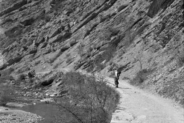Lungo la mulattiera di fondovalle del Bidente di Ridracoli, presso Ridracoli. Stratificazione marnoso arenacea del Langhiano.