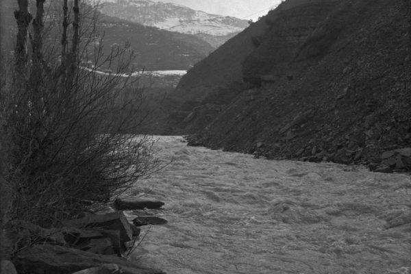 Lungo la mulattiera di fondovalle del Bidente di Ridracoli, presso Ridracoli. Stratificazione marnoso arenacea del Langhiano.