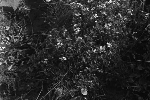 Arabis alpina sulle sponde dei ruscelli presso Cascina giogo, insieme a Saxifraga rotundifolia e Rubus idaeus.