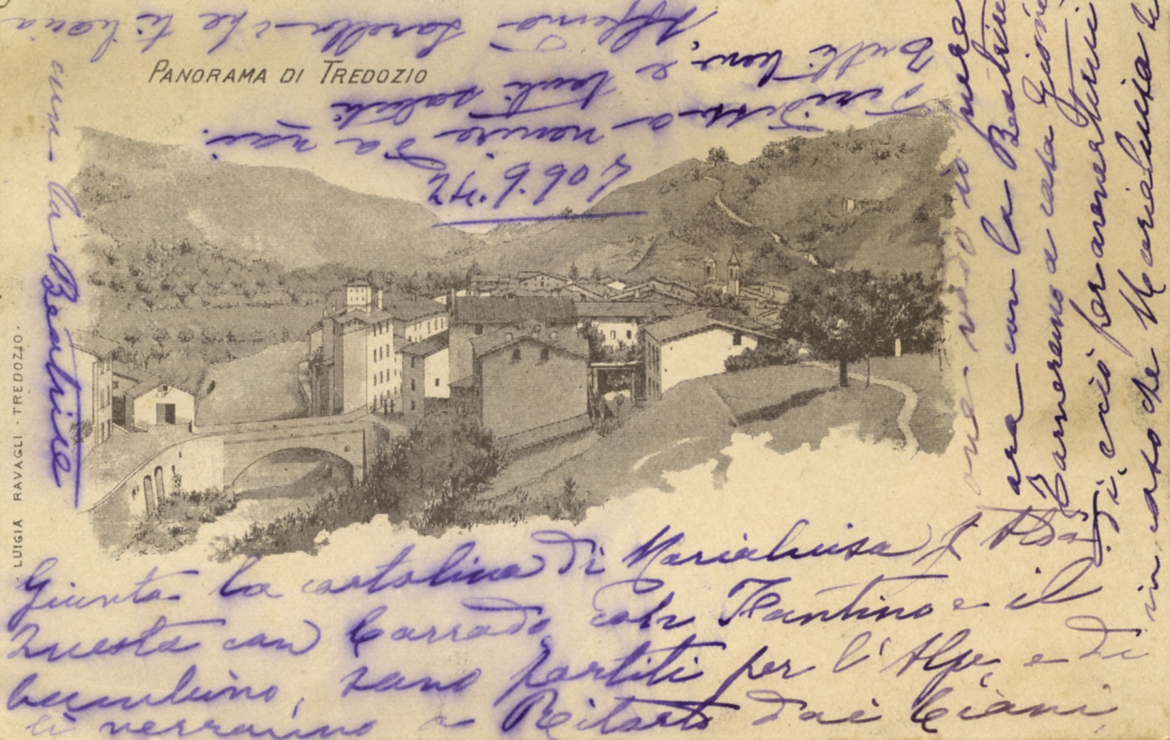 Torna a Archivio FotoArchivio Famiglia GiannelliNr. Archivio: Giannelli_020 | Località: Tredozio | Comune: Tredozio | Anno: Panorama di Tredozio; Litografia di Tredozio