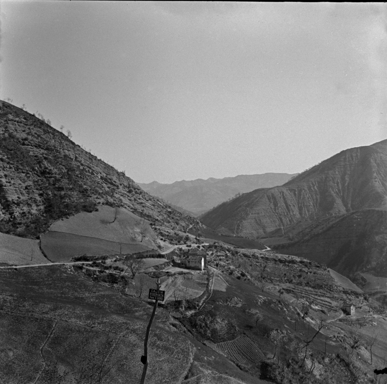 Torna a Archivio FotoArchivio Pietro ZangheriNr. Archivio: 1018 | Località: Ridracoli | Comune: Bagno di Romagna | Anno: 1939 La valle del Bidente di Ridracoli vista da Vignale.