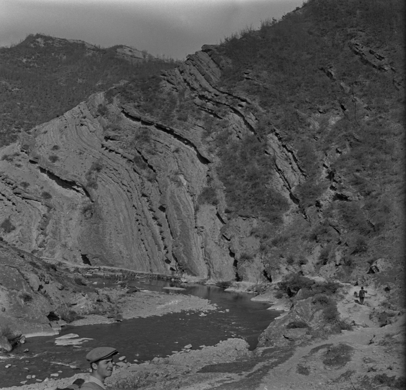 Torna a Archivio FotoArchivio Pietro ZangheriNr. Archivio: 1026 | Località: Ridracoli | Comune: Bagno di Romagna | Anno: 1939 Lungo il Bidente di Ridracoli stratificazioni contorte del miocene.