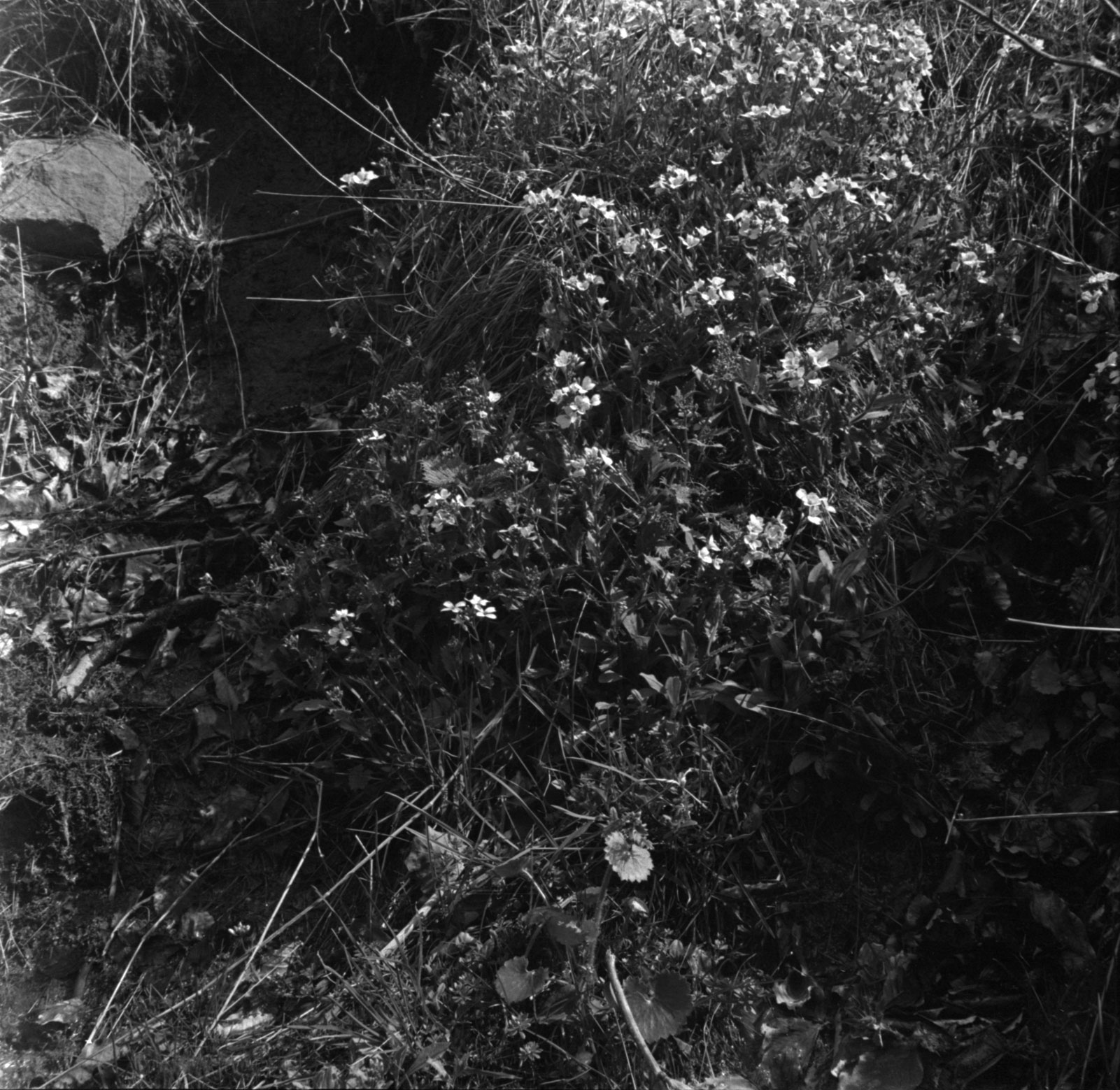 Arabis alpina sulle sponde dei ruscelli presso Cascina giogo, insieme a Saxifraga rotundifolia e Rubus idaeus.